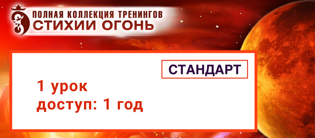 - Доступ к тренингу открывается на 1 г. для одиночных тренингов, 2 г. для полного блока тренингов "Стихии Огонь" и навсегда для тренингов годового абонемента