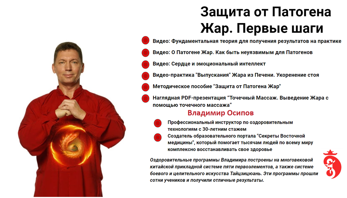 - Создатель образовательного портала "Секреты Восточной медицины", который помогает тысячам людей по всему миру комплексно восстанавливать свое здоровье