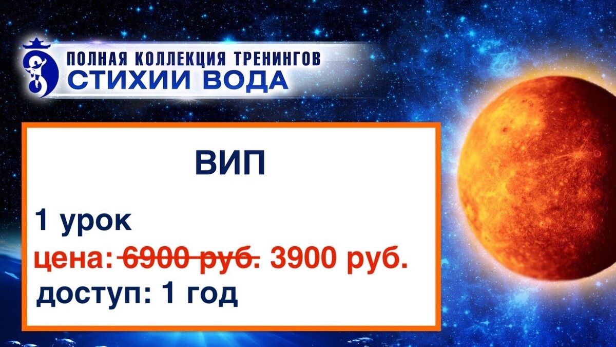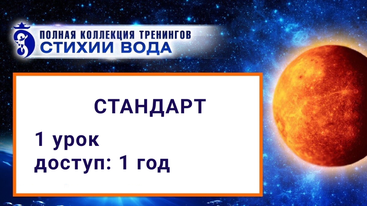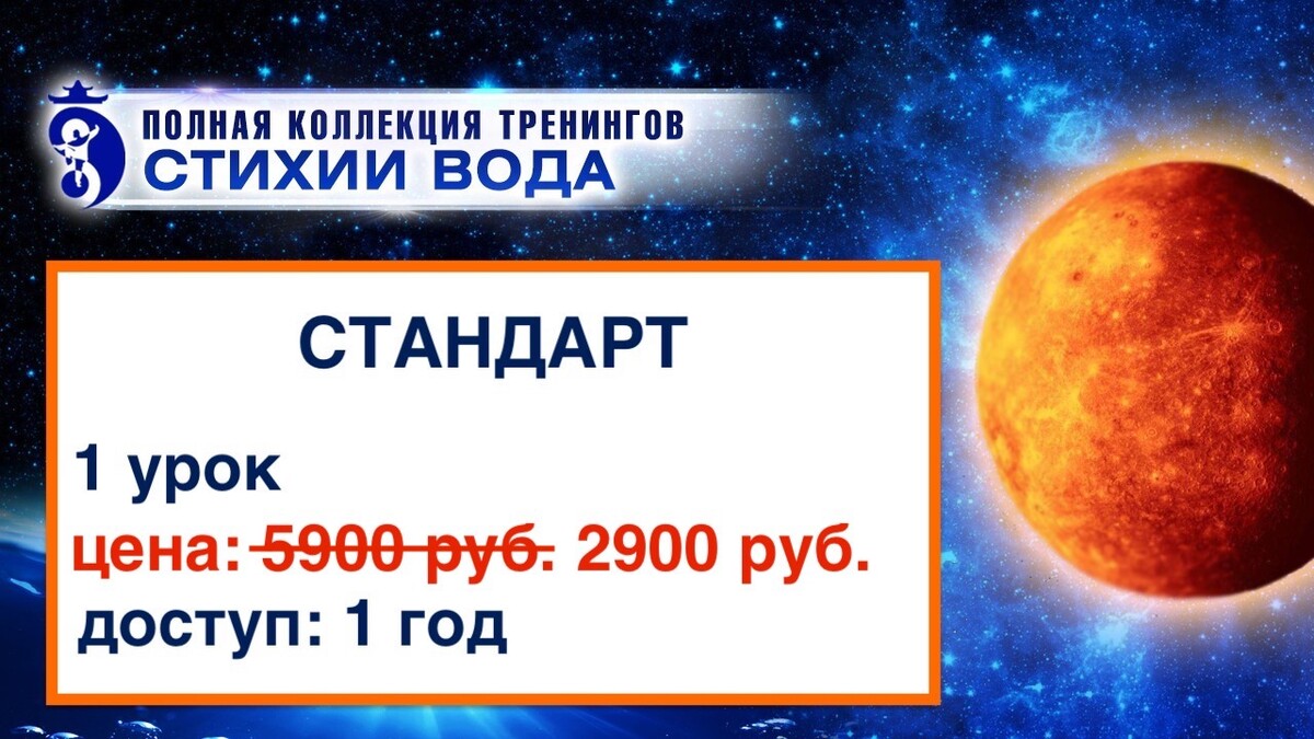 - Доступ к тренингу открывается на 1 г. для одиночных тренингов, 2 г. для полного блока тренингов "Стихии Вода" и навсегда для тренингов годового абонемента